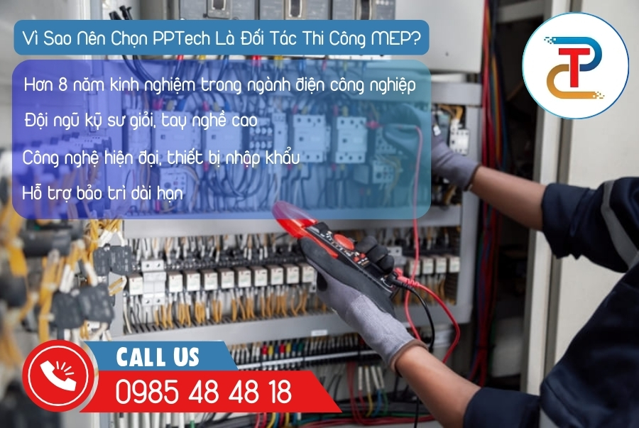 PPTech chuyên thi công hệ thống MEP cho nhà xưởng, tòa nhà, tối ưu chi phí – đảm bảo chất lượng. Dịch vụ chuyên nghiệp, đạt chuẩn, bền vững và an toàn.